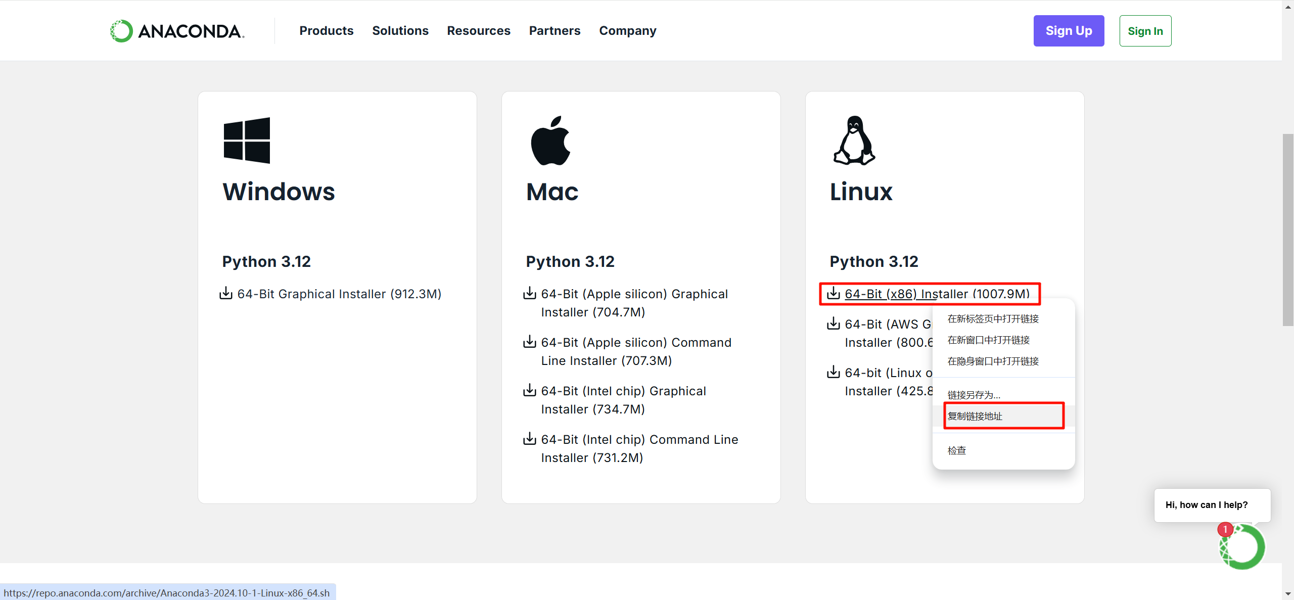 在Anaconda官方链接中下载Linux版本的Anaconda: