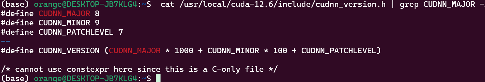 1 | cat /usr/local/cuda-12.6(自己检查具体的版本修改路径)/include/cudnn_version.h | grep CUDNN_MAJOR -A 2 |